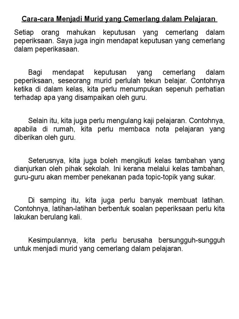 Karangan Memperoleh Keputusan Cemerlang Dalam Peperiksaan